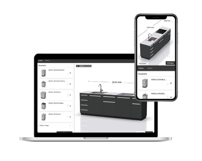 Plane deine Küche im Konfigurator und bestimme Materialien, Farben und Ausstattung selbst.